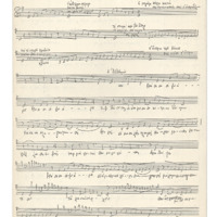 a) autograph sketches b) photocopy of autograph Μ. Th. (lyrics, melody) c) photocopy of autograph Μ. Th. (orchestration) d) transparency of copy by someone else of score for choral and piano part e) photocopy of autograph by someone else wit guitar part (?) f) chorus and piano