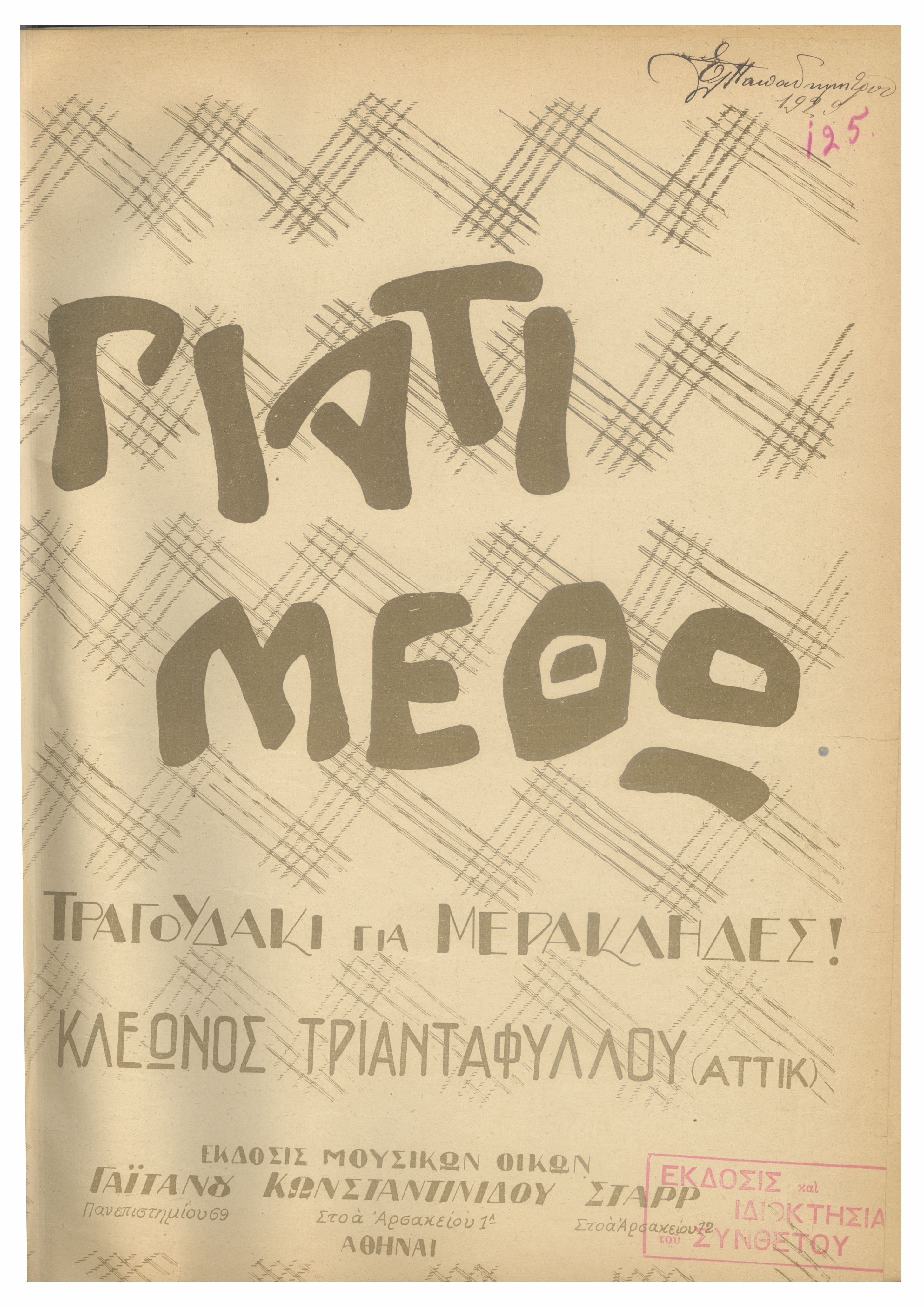 Το έργο είναι από το αρχείο βιβλίων ''Ελληνικά τραγούδια