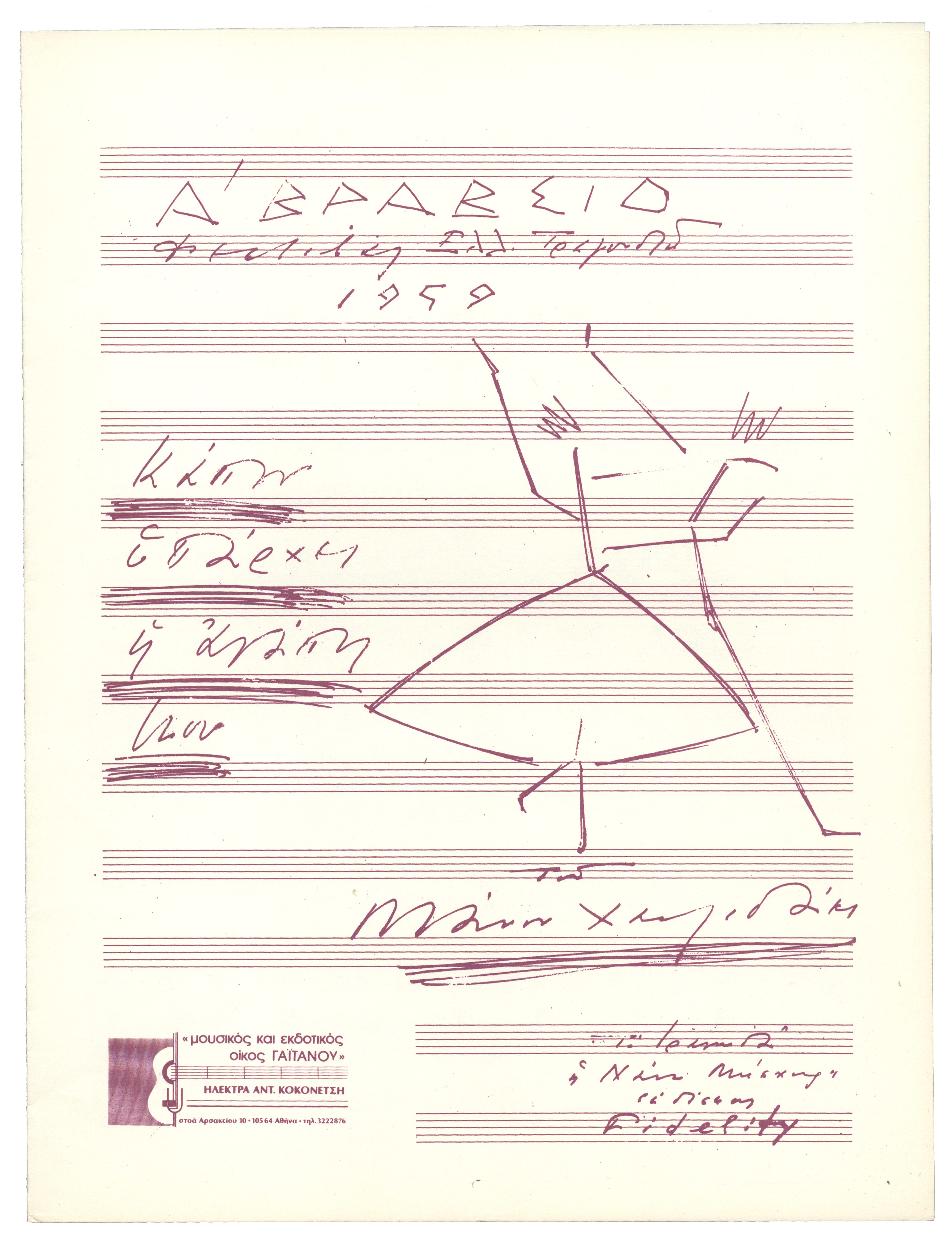 Α΄ Βραβείο Φεστιβάλ Ελλ. Τραγουδιού. Υπάρχει αφιέρωση του συνθέτη στον Εμιρζά