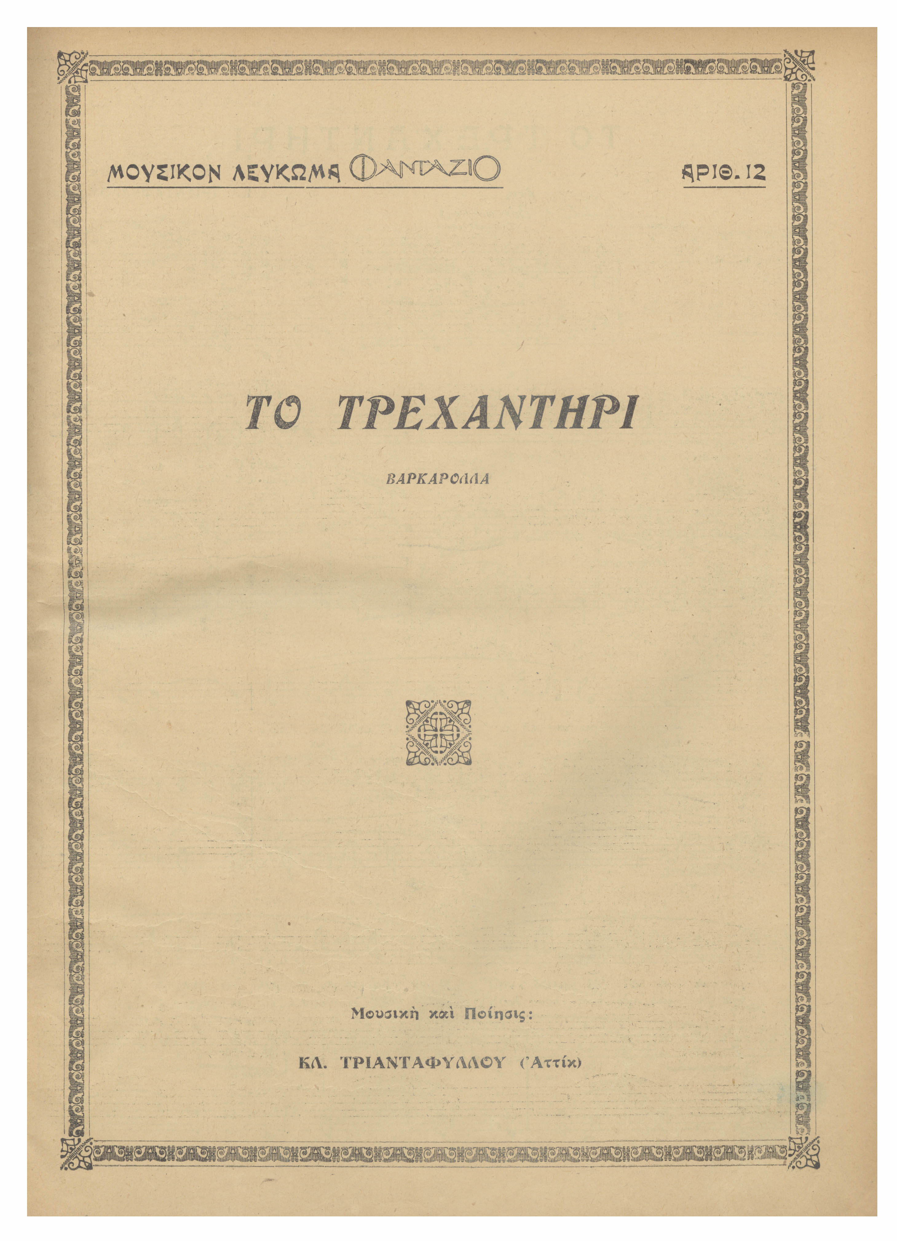 Το έργο είναι από το αρχείο βιβλίων ''Ελληνικά τραγούδια / Μουσικόν Λεύκωμα ‘‘Φαντάζιο’’ αριθ. 12
