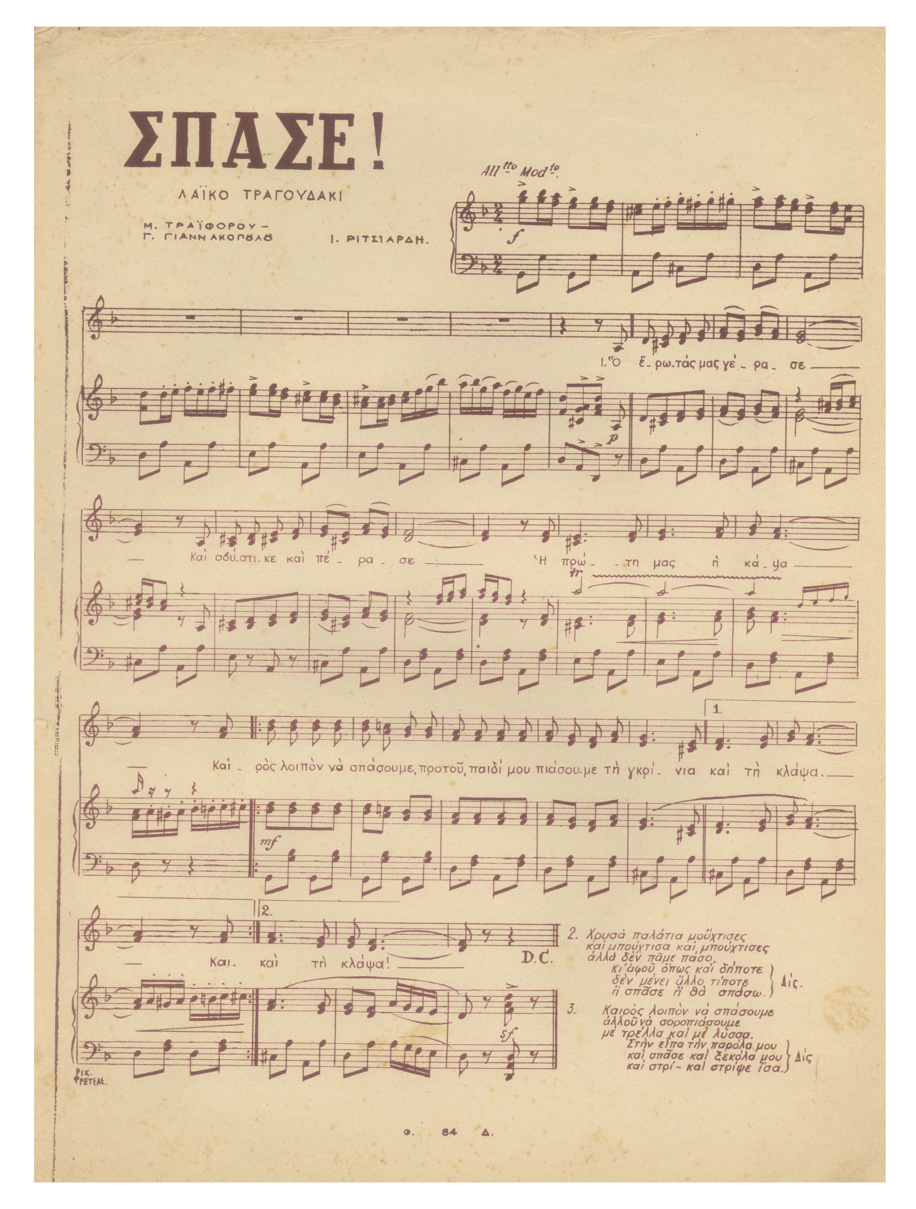 Λαϊκό τραγούδι (Το τραγούδι υπάρχει σε δύο αντίτυπα)