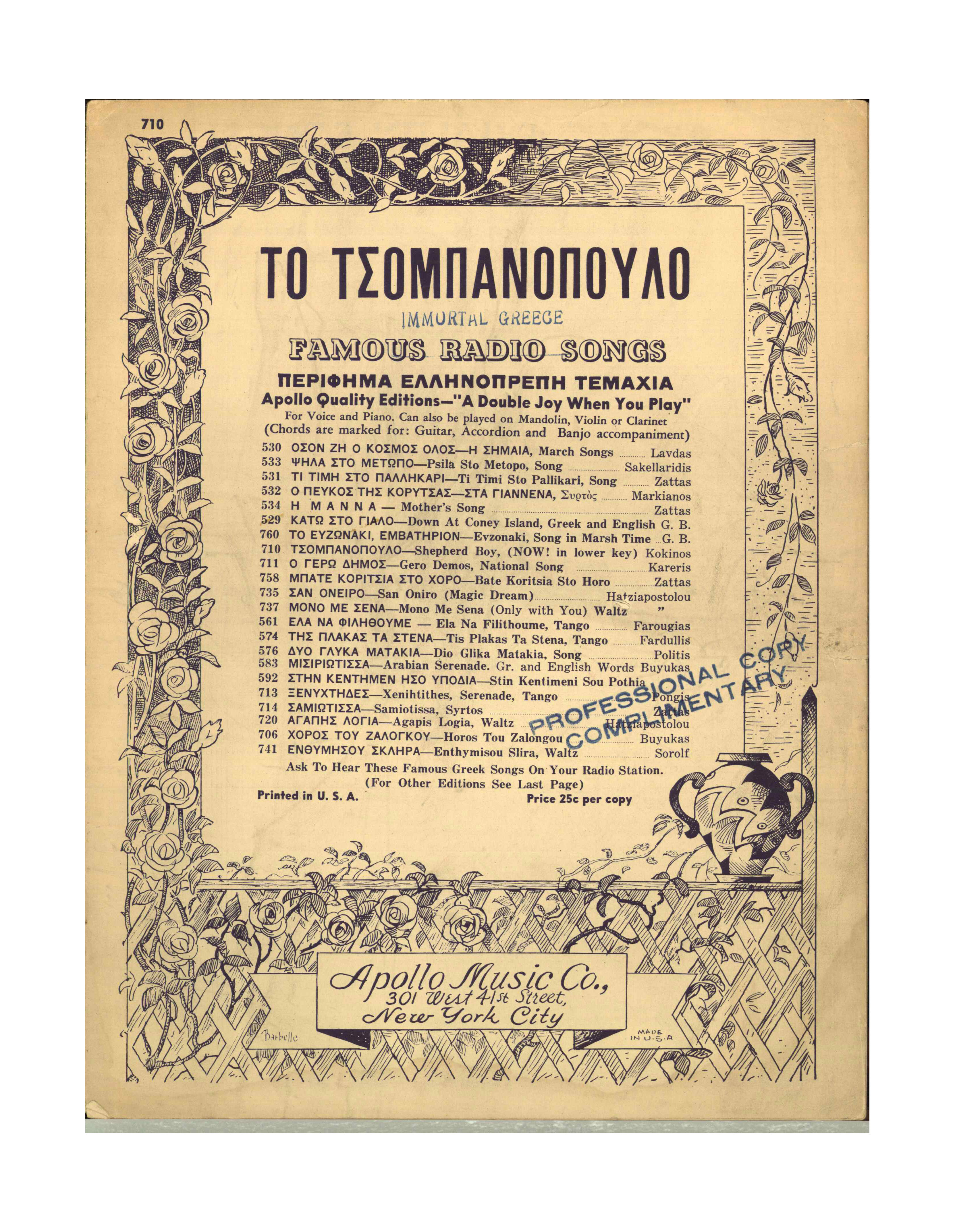 Το τραγούδι υπάρχει σε δυο αντίτυπα. Το ένα εκ των δυο έχει χειρόγραφη αφιέρωση [δυσανάγνωστη].