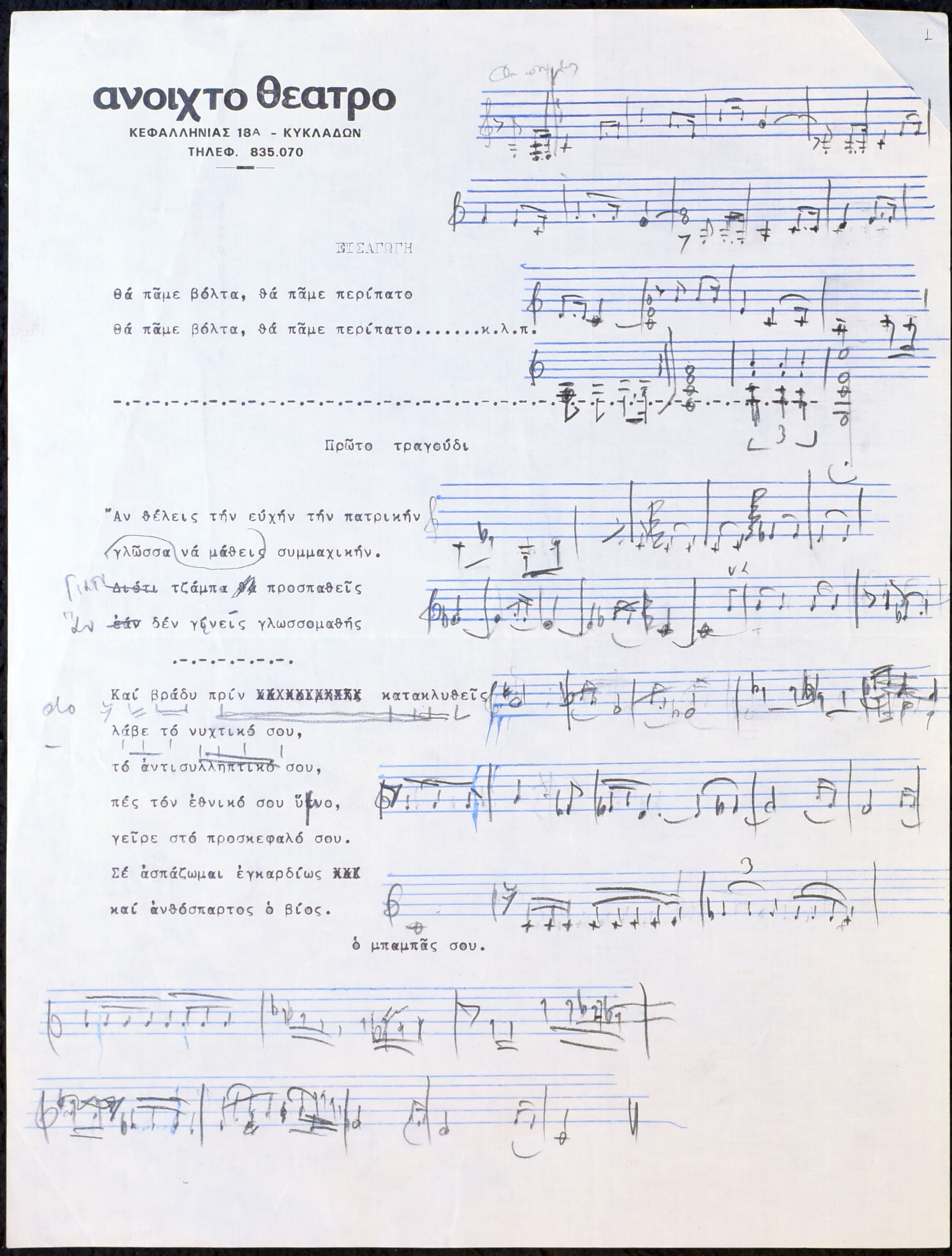 Χειρόγραφα σκίτσα παρτιτούρας