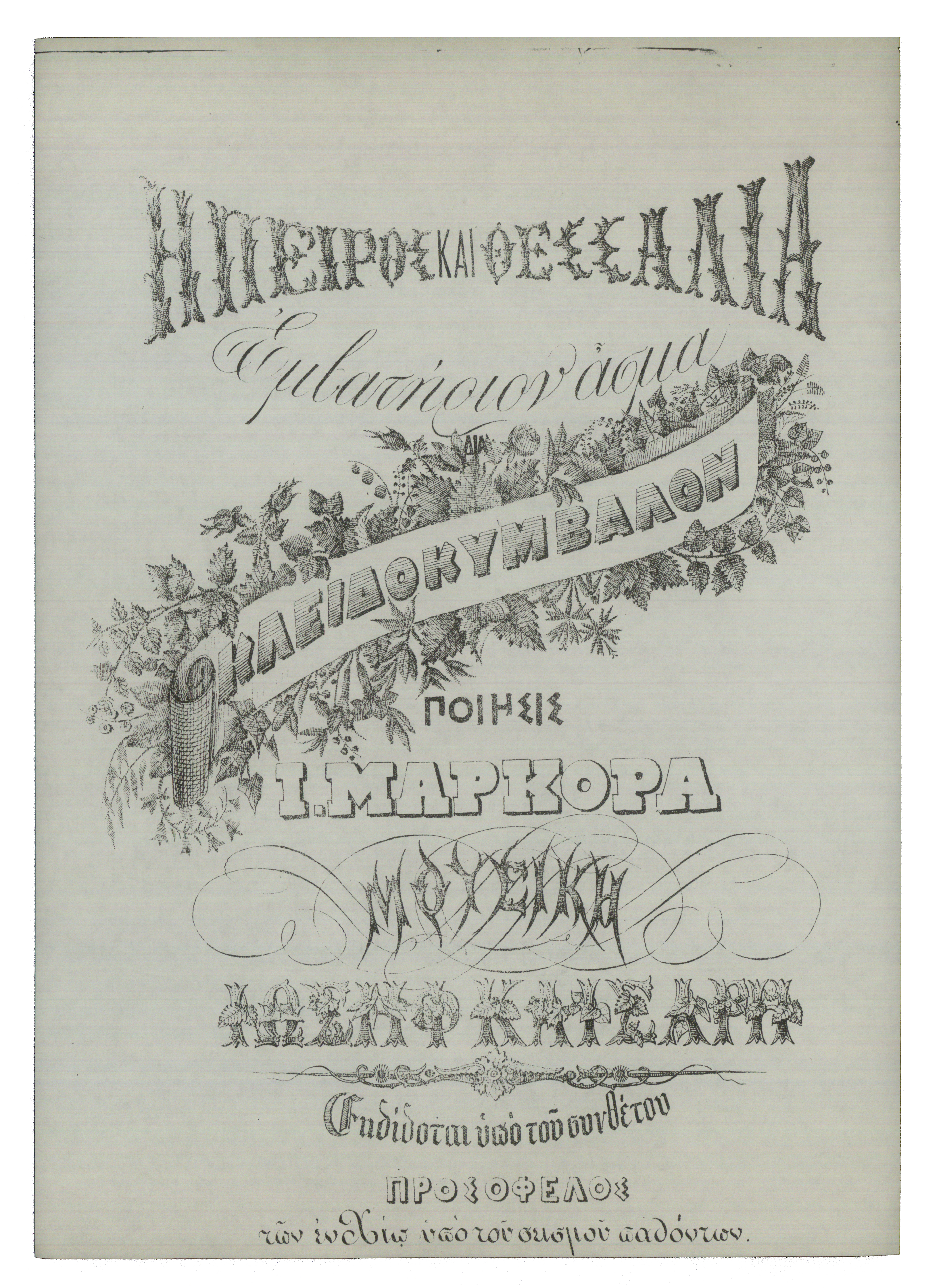 Εμβατήριον άσμα δια κλειδοκύμβαλον. Επιδιδόται από του συνθέτου προσόφελος των εν Χίω υπό του σεισμού παθόντων.