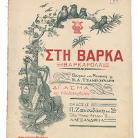 Βαρκαρόλα. Δι` άσμα και Κλειδοκύμβαλον. Μελωδία εκ του Ιταλικού. Opera 24. Διασκευή Π. Δ. Τσαμπουνάρη. Λιθοτυπ. "αι Μούσαι", αδελφών Α. Γαρουφαλή, Αλεξάνδρεια.