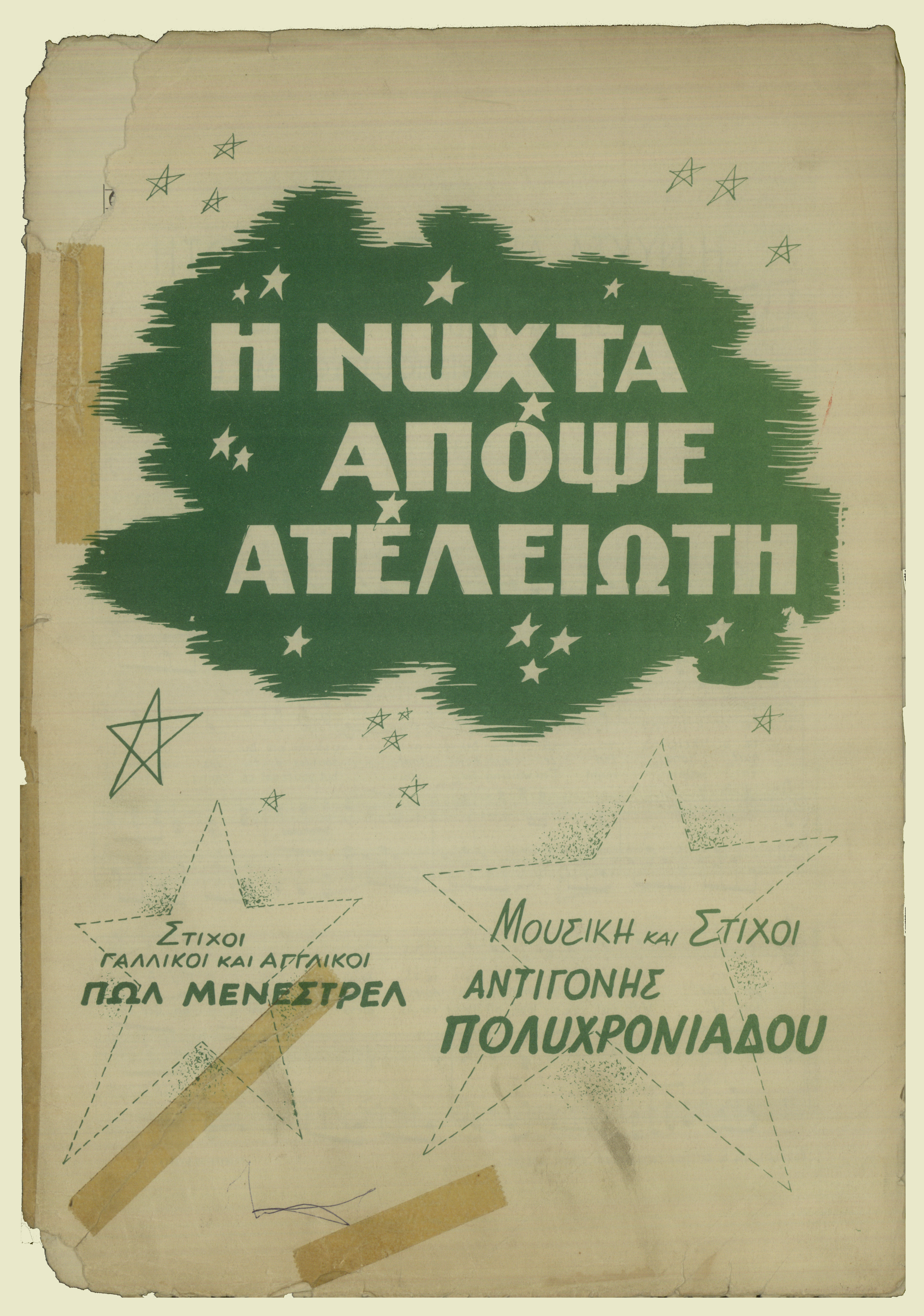 Πολυχρονιάδου, Αντιγόνη (ελληνικοί στίχοι) / Μενεστρέλ, Πωλ (γαλλικοί και αγγλικοί στίχοι)