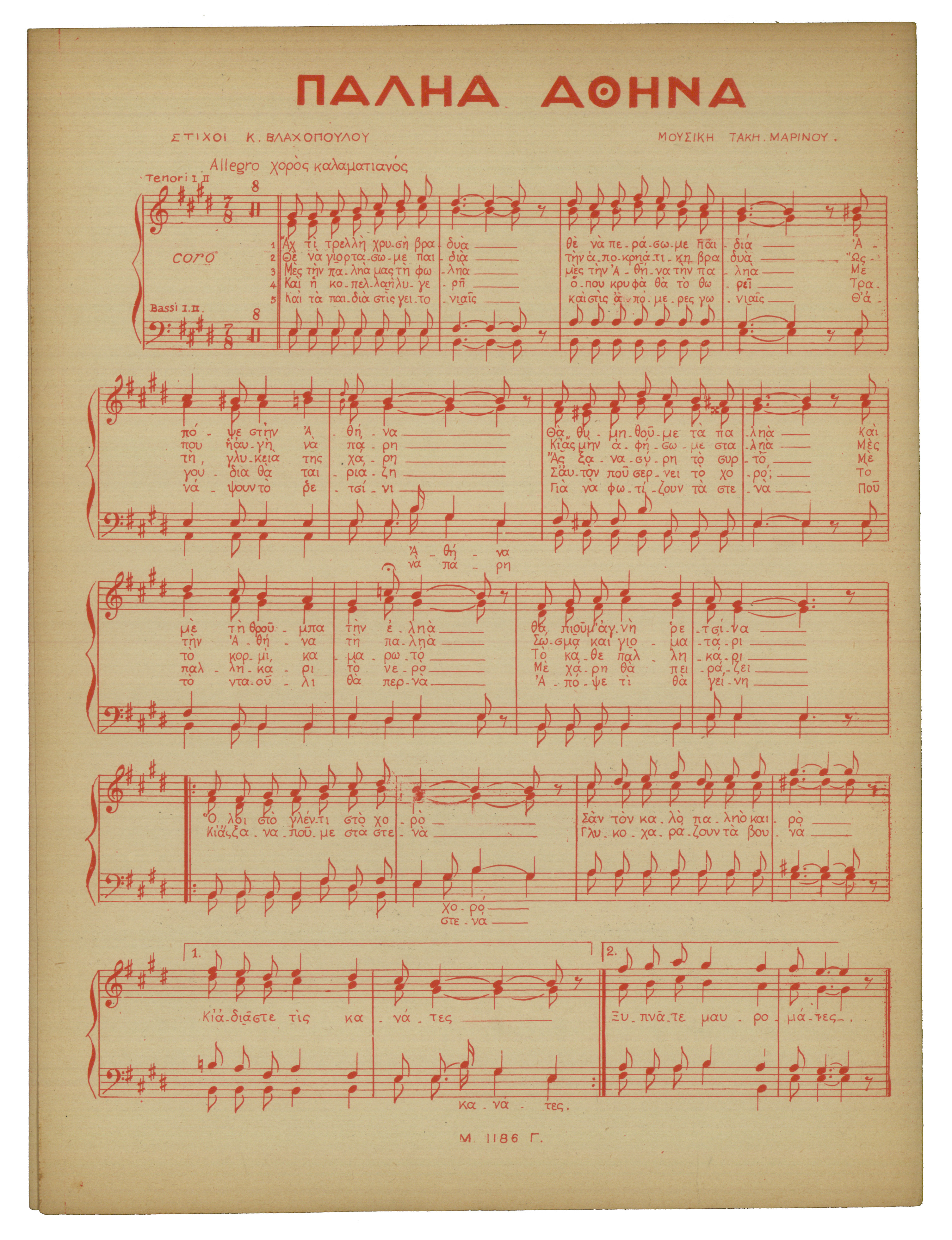 Χορός Καλαματιανός (το τραγούδι είναι 2η έκδοση και υπάρχει σε επτά αντίτυπα)