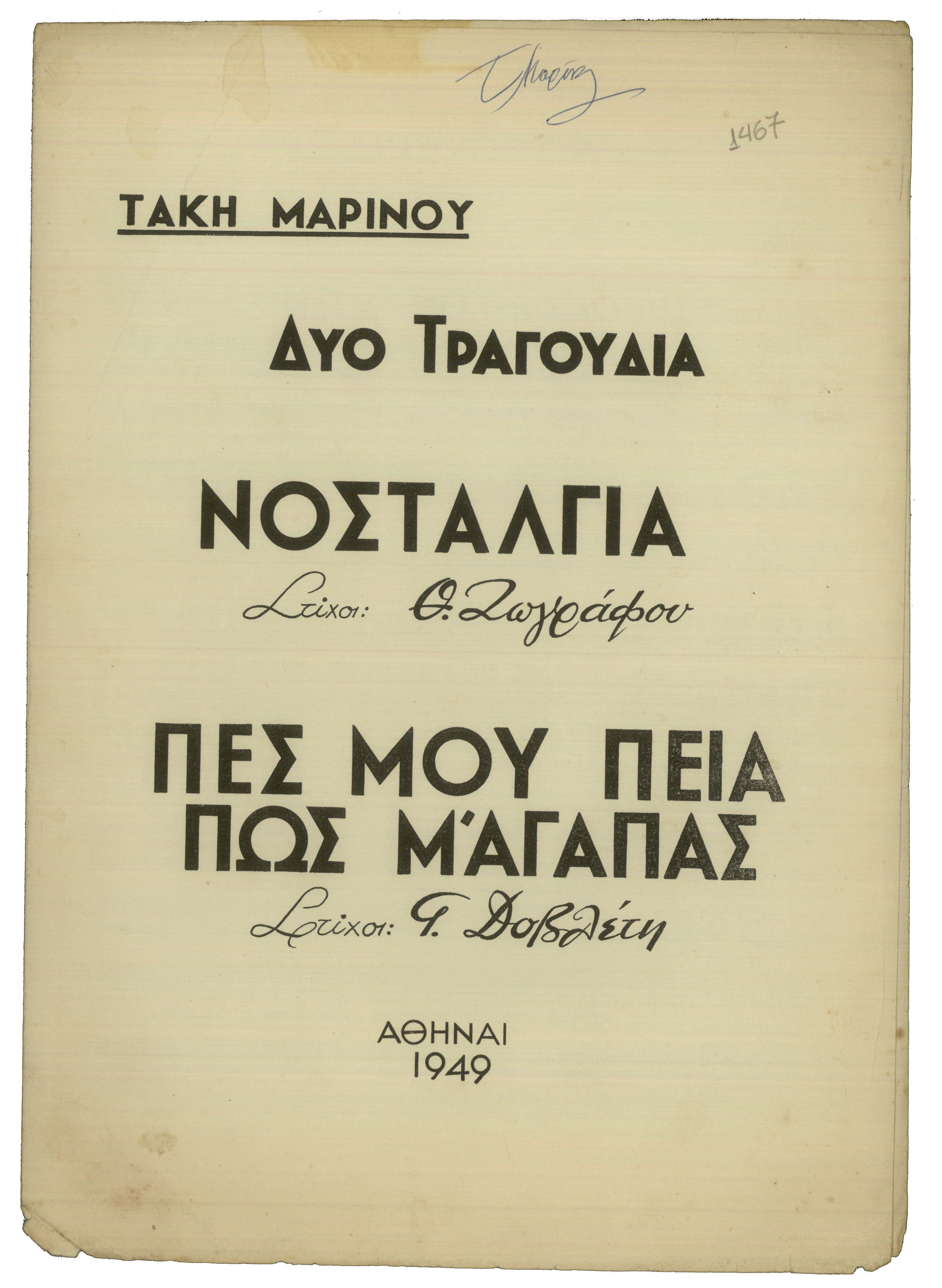 Διωδία (το τραγούδι υπάρχει και σε φωτοτυπημένο αντίτυπο)