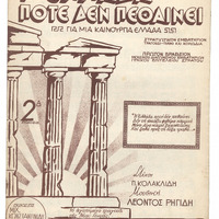 Φέρει την υπογραφή του συνθέτη / Φρέτσας, Ριχάρδο (χαράκτης) / Ενοργάνωσις δια Στρ. Μουσίκας, Λοχαγού αρχιμουσικού Μ. Καστέλλη